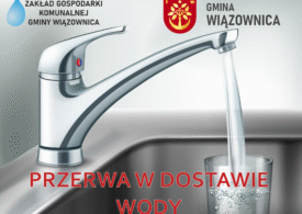 Zakład Gospodarki Komunalnej Gminy Wiązownica zawiadamia, że z powodu prowadzonych prac na sieci wodociągowej w miejscowości Szówsko w dniu 02.07.2025r. (tj. Środa) w godzinach od 8:00 do 13:00 nastąpi przerwa w dostawie wody dla mieszkańców miejscowości Szówsko gminy Wiązownica. Po zakończeniu prac może nastąpić chwilowe pogorszenie jakości wody. Za utrudnienia przepraszamy. Dyrektor ZGK Gminy Wiązownica