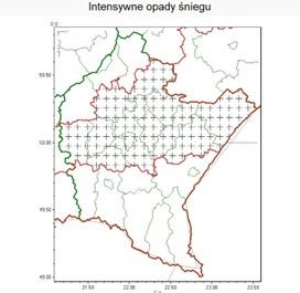 Sytuacja meteorologiczna: Występują opady śniegu, okresami o umiarkowanym natężeniu. W ciągu godziny przeważnie notowany jest przyrost pokrywy śnieżnej o 2 cm do 4 cm. W czasie większego natężenia opadów widzialność obniża się do około 500 m. Do godz. 08:00 najbardziej intensywne opady zaznaczą się w rejonie Rzeszowa, Przemyśla, Krosna, czy Leska.