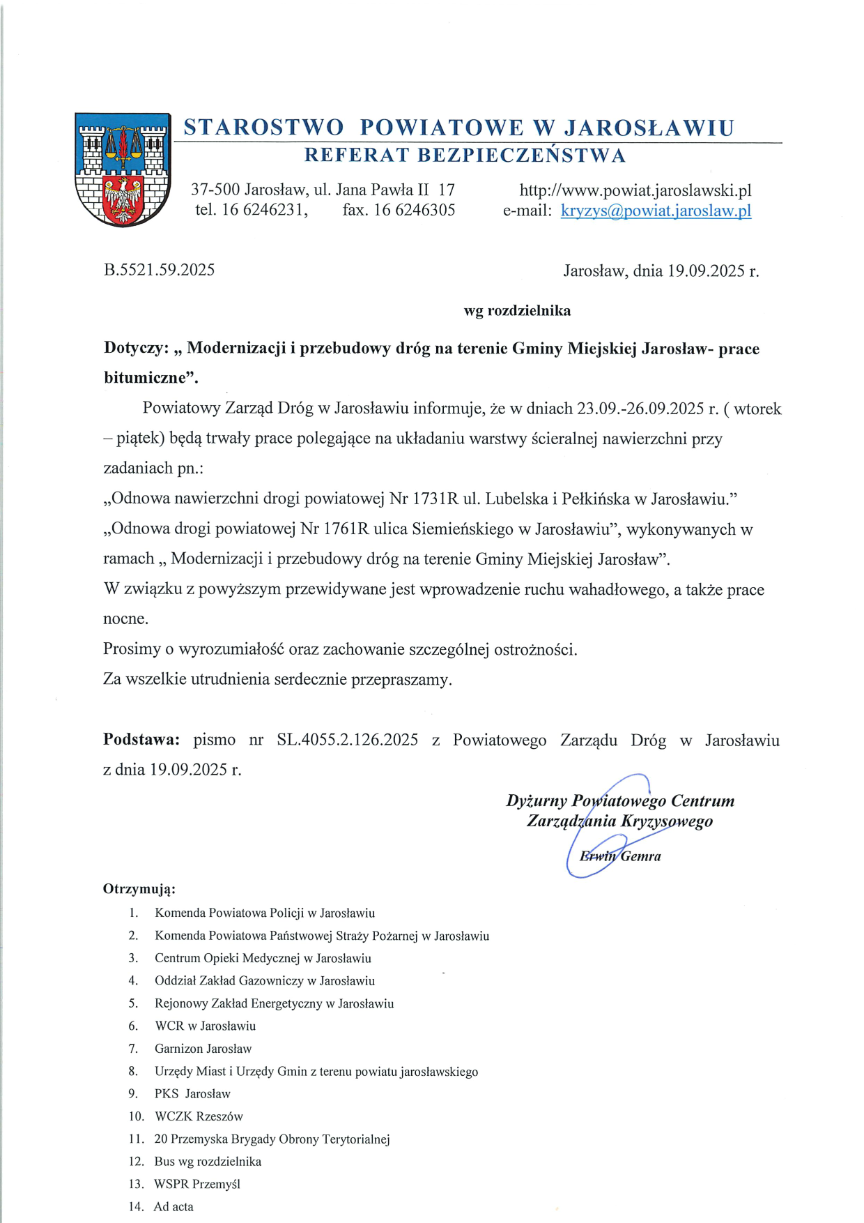 MODERNIZACJA I PRZEBUDOWA DRÓG NA TERENIE GMINY MIEJSKIEJ JAROSŁAW – PRACE BITUMIECZNE