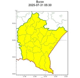 Przebieg:Miejscami wystąpią burze, którym lokalnie będą towarzyszyć silniejsze opady deszczu do 30 mm. W czasie burz porywy wiatru do 65 km/h. Lokalnie drobny grad.