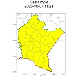 Przebieg: Prognozuje się miejscami gęste mgły, w zasięgu których widzialność będzie wynosić poniżej 200 m.