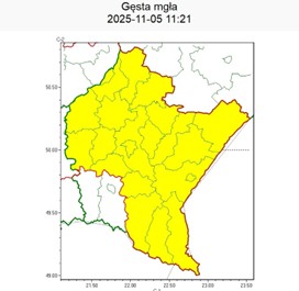 Przebieg: Prognozuje się gęste mgły, w zasięgu których widzialność może miejscami wynosić poniżej 200 m, lokalnie do 100 m.