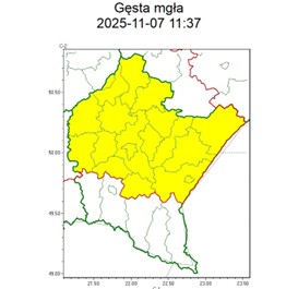 Przebieg: Prognozuje się gęste mgły, w zasięgu których widzialność może miejscami wynosić poniżej 200 m.